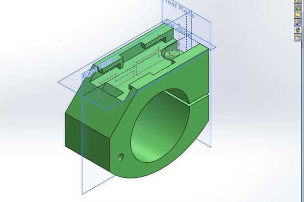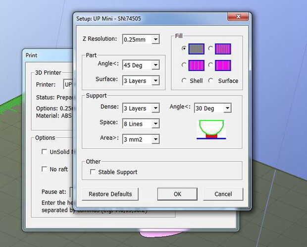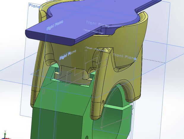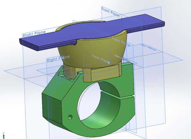 Modelo de los componentes utilizando SolidWorks 2014. Una vez que se reunieron con eficacia preparé el componente de soporte para la impresión 3D a través de este flujo de producción: sólido obras parte ambiente > guardar parte como archivo STL de alta resolución. Abrir archivo STL en Mini software y prepara el archivo para impresión sólida en las máquinas de resolución más alta (capas de 0.2 mm). Impreso en Up! Mini con plástico ABS natural.