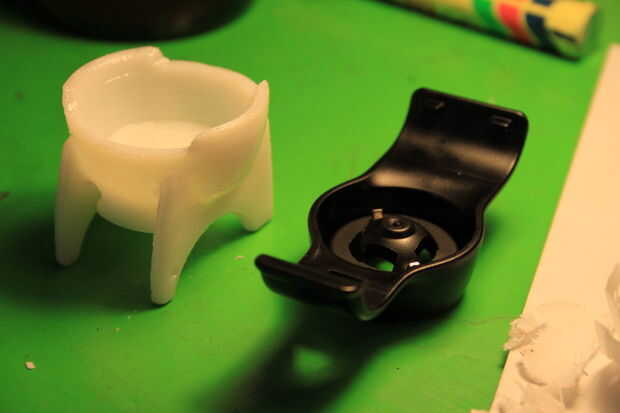 Acabado: El plástico es plástico ABS natural con muy buena trabajabilidad y resistencia conveniente, pero prácticamente cero protección UV. Esto resultaría en el soporte inmediato deterioro y convertirse en frágiles, como se expone a la luz solar. Decidí aplicar el soporte con una gruesa capa de aerosol de esmalte. Desmontar el soporte y rocía toda la fuera del componente. Una vez seco, me alegró me quité lo 0,5 mm en las superficies de contacto, como la pintura era sorprendentemente gruesa.