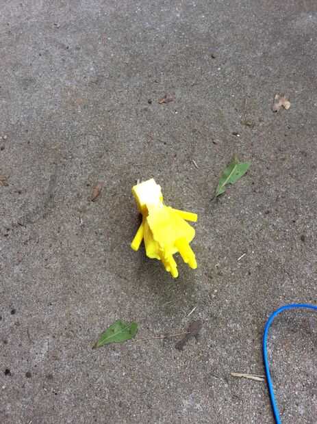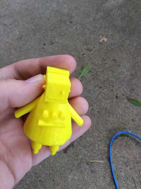 la manera que fue impreso este robot estaba de espaldas así que había una ayuda grande en la parte posterior para que tuviera una gran cara plana que se imprimirá en esta extendida también por una pierna, creo que se extendió por ambos pero por el momento que lo tengo ya había sido quitado de una pierna.