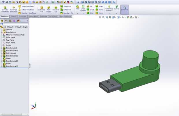 Ahora vamos a hacer la parte del conector USB. Utilice la función 'Boss saca' para crear un rectángulo y huecos, al principio en la anchura del cable USB que utilice y más tarde en hacerlo más estrecho, así que el cable sí mismo será capaz de pasar pero el USB sí mismo no. Uso ' extrusión "otra vez para hacer un cilindro de la anchura de la circunferencia exterior de la base que hemos hecho. En él, utilice 'Extrude' otra vez para hacer un cilindro hueco, para que los cables también será capaces de pasar por allí. (en la foto no es delicada, pero debe ser). Hacer la circunferencia del cilindro levemente menos que la circunferencia interior del cilindro en la calabaza, por lo que cabrá cuando todos hemos terminado. Colorearlo.