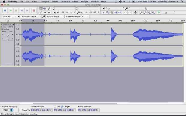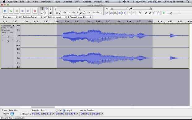 Si ya no lo tienes, descarga Audacity aquí. Audacity es un editor de audio gratuito y fácil de usar que se ejecuta en cualquier sistema operativo. También descargar el codificador mp3 LAME aquí así que usted puede generar archivos mp3 con Audacity. Abra Audacity y presione el botón rojo circular en el ángulo superior izquierdo para comenzar a grabar tu voz. Tratar de decir la palabra "pendiente" de varias formas diferentes (tal vez en un pobre acento británico) para hacer formas de onda de forma diferente. Cuando haya terminado, presione el botón de parada de amarillo en la esquina superior izquierda. Guardar cada sección del sonido como un archivo mp3 separado seleccionando con el cursor y utilizando el 'archivo' -> comando exportar selección.