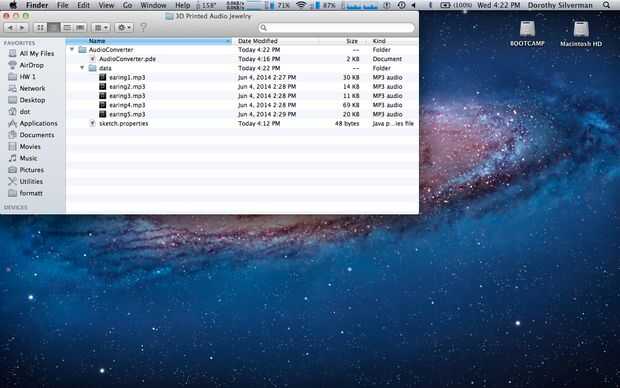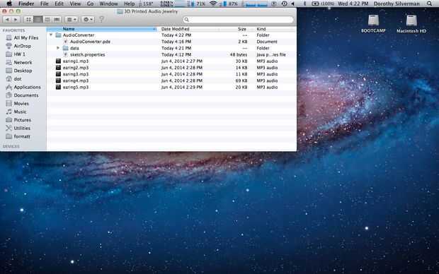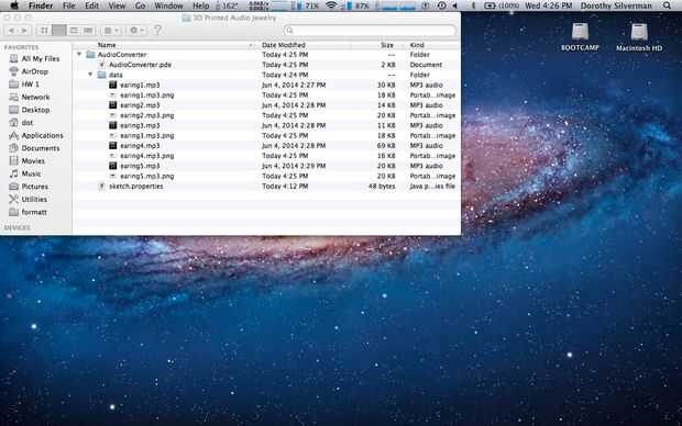 Una vez descargada la carpeta, cree una nueva carpeta dentro llamada "data". Mueva todos los archivos de mp3 dentro de "datos". La secuencia de comandos 'AudioConverter' está escrito para leer archivos mp3 en esta carpeta. Ejecute el script, y png archivos correspondientes a cada archivo mp3 deben aparecer dentro de "datos".