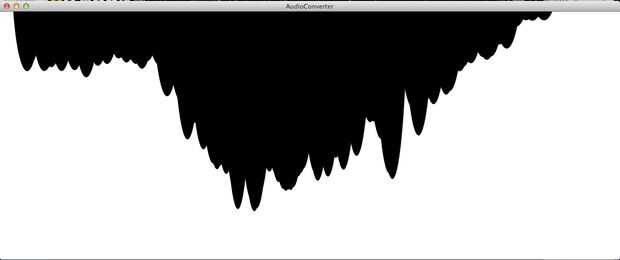 Un simple script de procesamiento escrito por Thiago Hersan genera imágenes de archivos de audio. He añadido comentarios a su guión para aquellos que quieran entender en detalle. La secuencia de comandos lee cualquier archivo mp3 en su directorio y devuelve un png. Si no tienes tratamiento, descargar aquí. Descargar la carpeta 'AudioConverter' adjunta a continuación.
