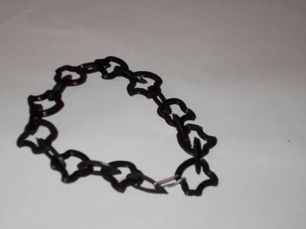 Si usted diseña tu pulsera imprimir formas y conectores como muchos como usted necesita. Conecte forma con conector y la otra forma (imagen 1). Si no tienes formas, solamente conectores (brazalete estándar) conectan dos conectores juntos (imagen 2). OK, pero todavía hay un agujero en el conector. Para cerrar extremos de restricción del (de la hoja) y ponerlos en el fuego por 1-2 segundos, pero sólo los extremos del conector - si llama tocará el resto del conector que deformirá. Usted puede también después de calentarlo en el fuego exprimirlo a mano mientras está todavía caliente. Hacerlo con cuidado para no quemarse o deformarse formas y conectores. Si ha conectado todas las formas y conectores juntos, tienes que hacer el cierre. Para hacer este clip de papel tomar, enderezar y cortar unos 3 centímetros. Doblarla en aproximadamente 1/3 puesto en forma y apriételo. Doble también en la mitad del resto como gancho.