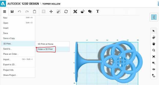 Archivo > Imprimir 3D > ordenar una impresión 3D