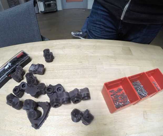 Limpieza para los modelos de impresos consiste en estructuras de apoyo con una combinación de pinzas, una navaja y un destornillador de cabeza plana de interrupción. Pude pasaron más tiempo borrar los rastros de estructuras de soporte con papel de lija, pero no se molestó porque estas partes de las tomas no sería visibles en la versión final.