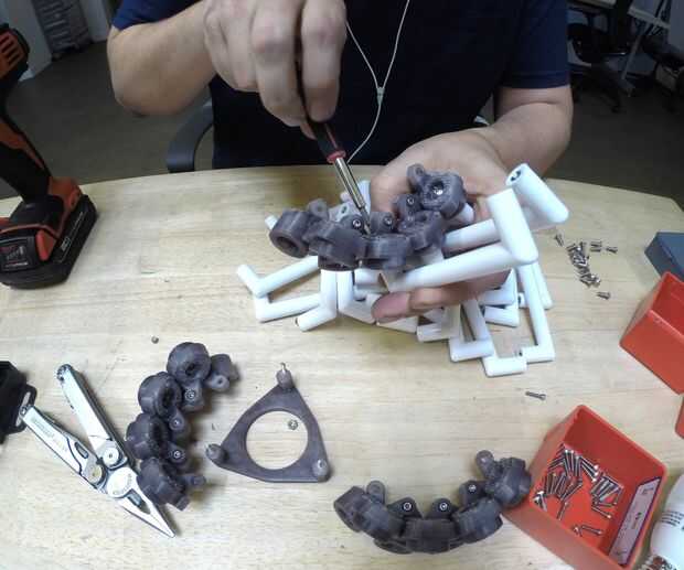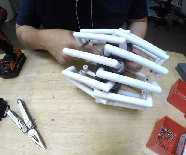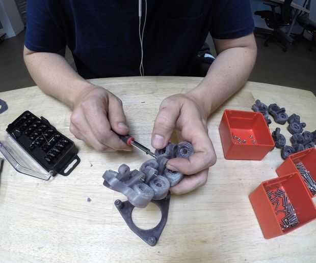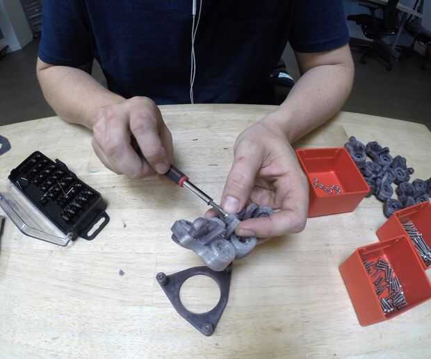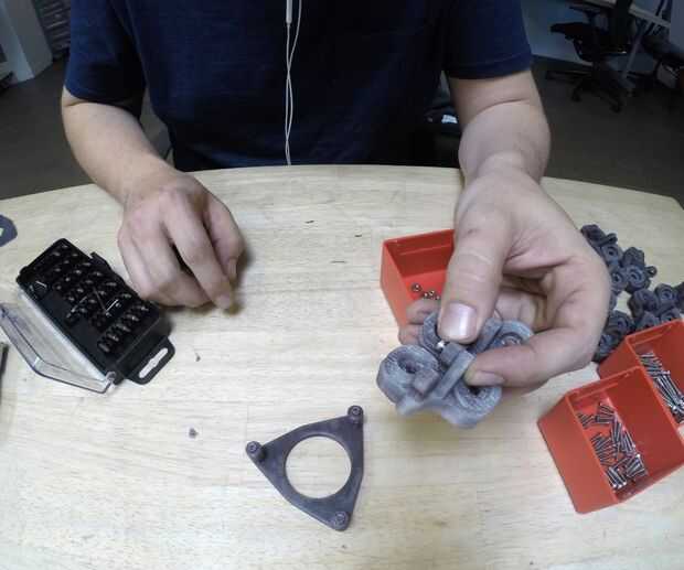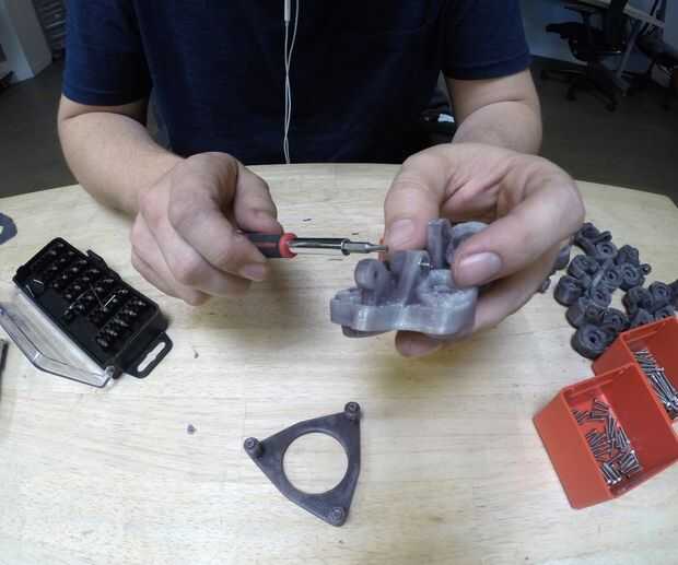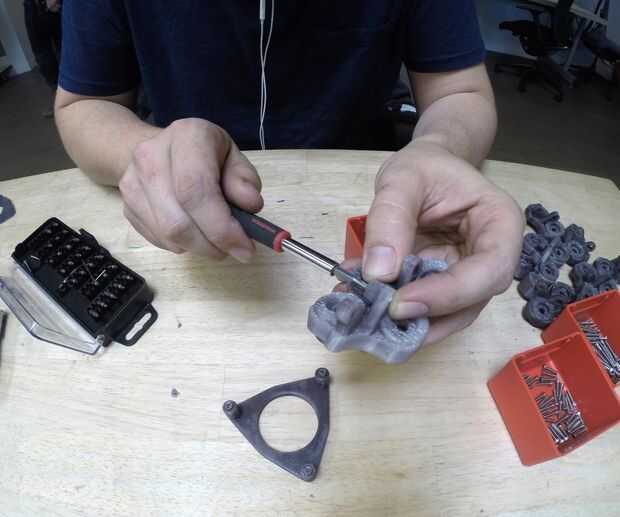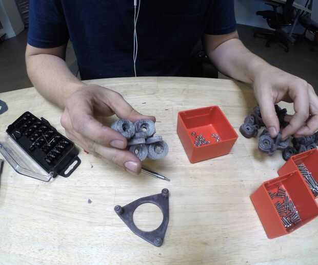 3. Cuando las 3 secciones son juntos, atornillar las manijas del cajón con los tornillos M3. Os adjunto mío para que se incline hacia adentro y hacer una forma football-ish, pero podría también girarlas al revés para que incline hacia fuera, haciendo más de una forma de yoyo.