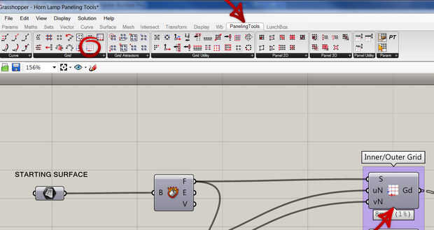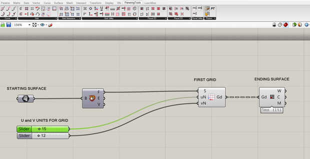 Ahora estamos listos para comenzar nuestra definición de grasshopper. Pop Abra el enchufe simplemente tecleando saltamontes (esto va para la mayoría de los alta comandos así). En saltamontes, simplemente haga doble clic en la rejilla trasera para llegar a esta línea de comandos.