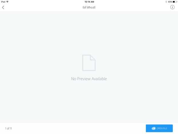 Uso de Adobe Creative Cloud, subir el archivo STL de Simplify3d en "archivos" en su cuenta de nube creativa de adobe. Lanzamiento de Morphi en su iPad, a continuación seleccione la STL como se muestra en la segunda captura de pantalla.