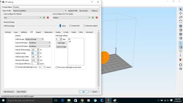 3. Desde entonces estoy utilizando relleno de 100% no creo que esto importan tanto, pero estoy usando 1 sólido superior, 1 inferior y 1 perímetro.
