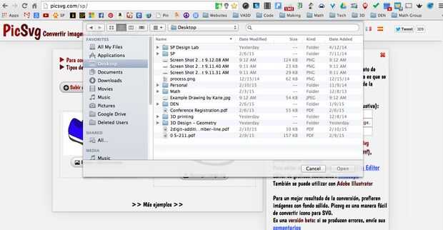 A continuación teníamos que convertir el archivo de dibujo de google en un archivo svg. Descarga directa de google draw no funcionaba así que en lugar de otro se descargó como un jpeg y convierten con http://picsvg.com/
