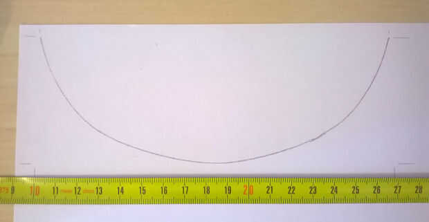 Para recuperar este esquema, usted necesita poner su monopatín boca abajo sobre una superficie plana, y coloque una hoja de papel debajo de la cola blanco. Ahora, simplemente utilice un lápiz para dibujar el contorno hasta por lo menos 5 centímetros de la extremidad. Entonces usted necesita hacer medidas precisas de la anchura y la altura de su dibujo (en realidad, su rectángulo delimitador) como se muestra en la foto de arriba y anotar para más tarde. Esto nos ayudará a ampliar el contorno a su tamaño correcto cuando importamos en nuestro software de CAD.