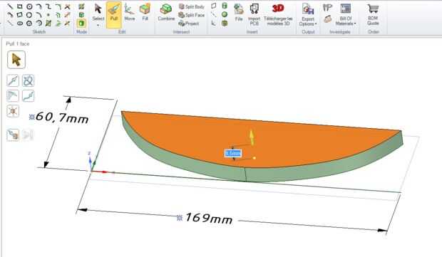 Puede quitar exceso líneas pulsando T y haciendo clic en cualquiera de ellos. Ahora saca la superficie hacia arriba por el valor de espesor eligió anterior (9,5 mm en mi caso) para obtener una pieza sólida.