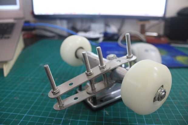 Esto era la parte más compleja, sin embargo, creativa de la construcción. Aquí es donde más patinetas difieren, y mía es muy singular en este sentido. Eso es porque mi bancada es 3D imprimir con mi impresora 3D DIY Prusa I3.