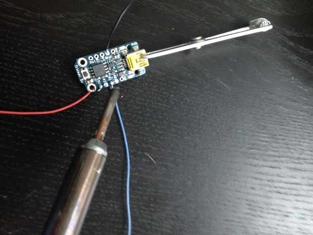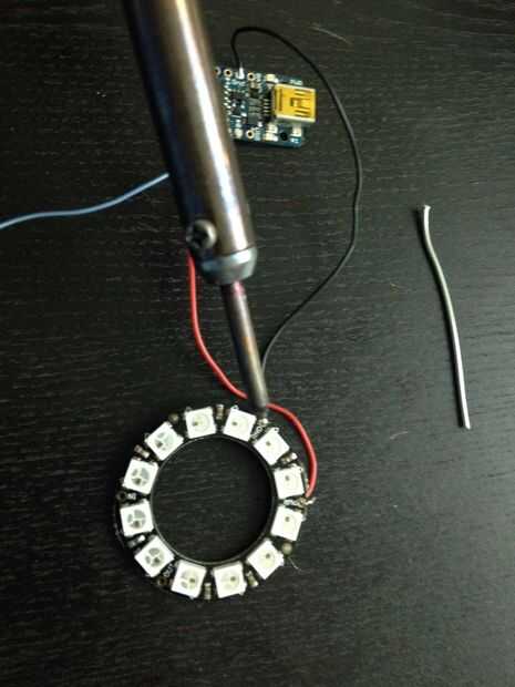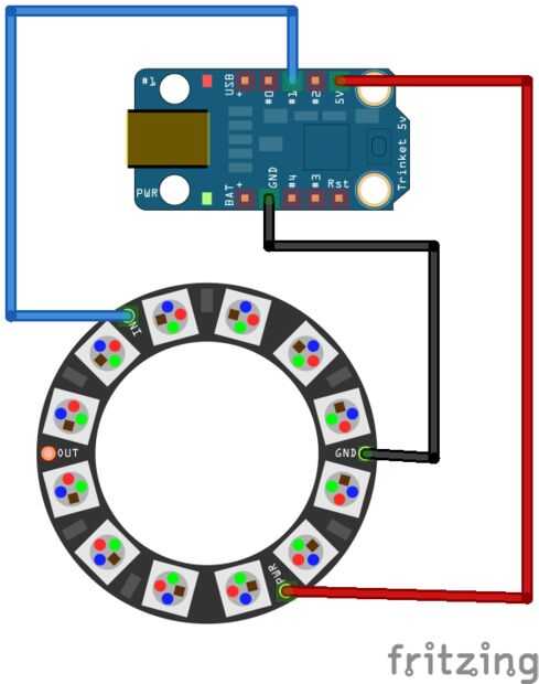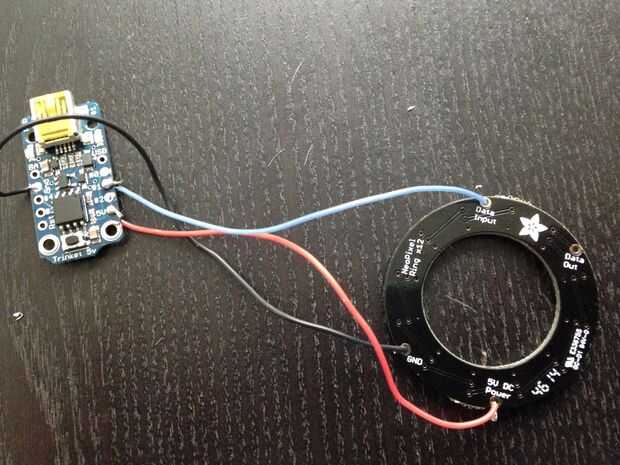 • Conectar el + ve (CC 5V) en el anillo de NeoPixel a Vout de la baratija