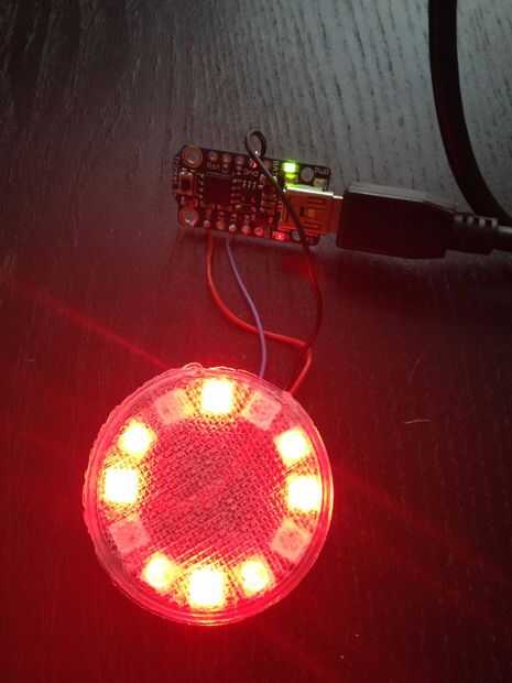 Ahora presione el botón situado justo debajo de la viruta en el Abalorio, esperar la luz roja a parpadear rojo brillante y luego cargar el código en el Abalorio (archivo > cargar)