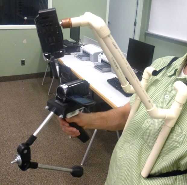 En mi primer ejemplo afronto las escaleras fuera de nuestro laboratorio de comtech. Realmente utilicé la cámara sobre el hombro Monte construido por uno de mis estudiantes para ayudar a capturar las imágenes de esta vacuna. Mi intención era mostrar cuán bien el MO-FLO 1.0 ayuda a suavizar mis fotos y subir y bajar escaleras y dando vuelta las esquinas.