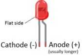 Para soldar los LEDs, es muy importanteque los LEDs están conectados con la orientación correcta. Los ánodos de los LEDs se conectarán a los pines de I/O digitales del microcontrolador, y los cátodos de los LED se conectará a tierra.
