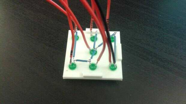 Empecé colocando todos los LEDs y sus conexiones de soldadura. Para la vivienda lo imprimí, los LED encajan perfectamente en los agujeros que permanecían firmemente en su lugar sin ningún pegamento. Dependiendo de su impresora puede necesitar un poco de pegamento para ayudarles a permanecer en el lugar.
