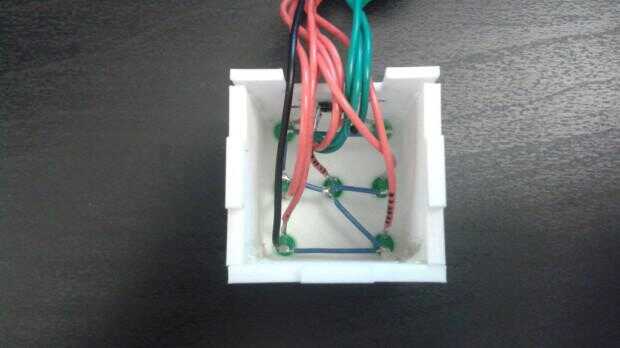 Ahora vamos a armar el cubo entero. Utilice pegamento según sea necesario para unir los lados del cubo. También tratar de mantener los cables alineados muy bien así que todo vendrá de la parte frontal cuando ponemos el cubo en la base.