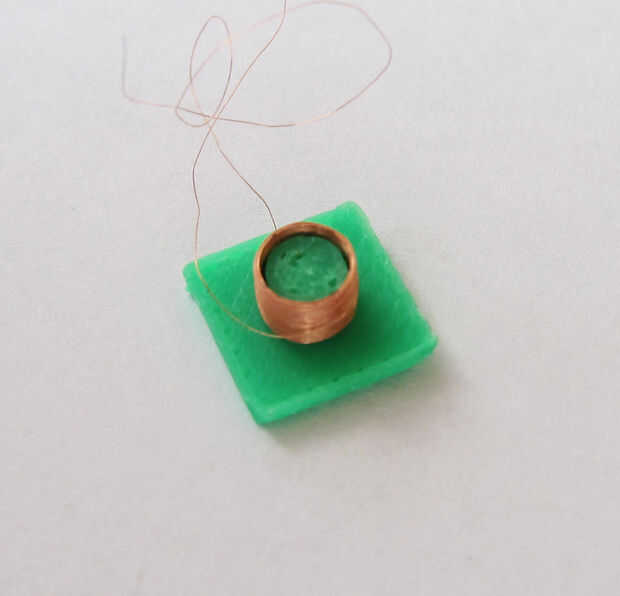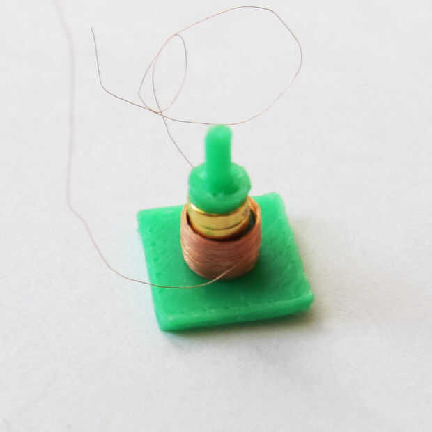 2. con la caída de pinzas la bobina en la parte superior del cilindro en la base, asegúrese de que los cables de la bobina son claros.