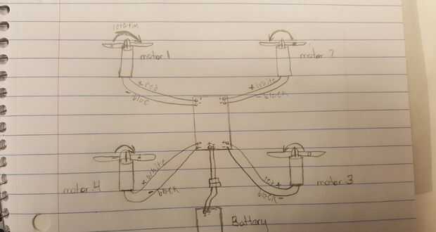 Ahora que tienes tus dimensiones en mente es importante tener una buena idea cómo todos ajustan antes de empezar a 3D modeling. le ayudará a elaborar un diagrama del circuito para el modelo ver si debe hacer cambios. con el quad copter la posición de los motores es muy importante cómo eficaz volará tu quad copter. Si se colocan mal que usted no será capaz de volar.