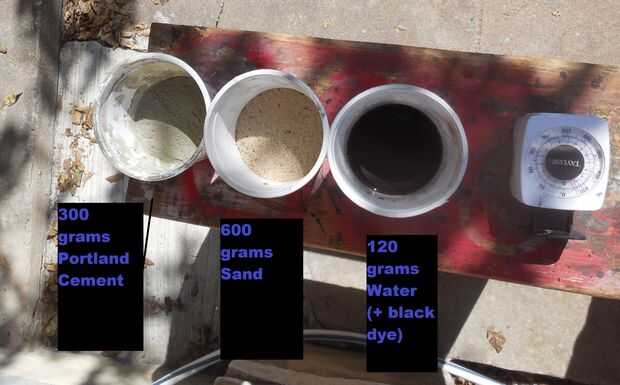 Esto varía en el tipo de concreto que usted elija. Elegí estándar de cemento Portland con agregado de arena. La proporción de mezcla para esto (por peso, no volumen, así que agarra a pequeña escala) es de aproximadamente 2 partes de agua y 5 partes de cemento Portland a 10 partes de arena. Para 4 posavasos, usted necesitará alrededor de 300 gramos (10 oz) de cemento Portland, 120 gramos (4 oz) de agua y cerca de 600 gramos (1 lb 4 oz) de arena. Pesar las cantidades y reservamos para el siguiente paso.