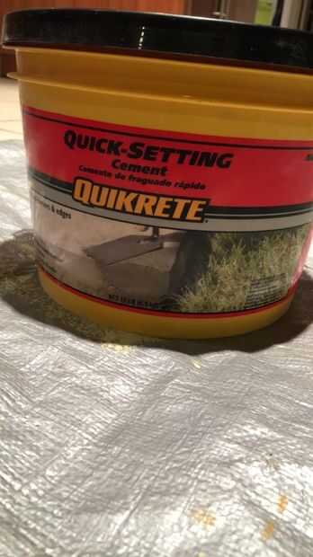 Como ya he dicho he utilizado Quickrete rápido ajuste concreto que viene en un cubo, pero, algo deceptivley vino en una bolsa, por lo que vació la bolsa en el cubo. El polvo que sale de la bolsa es muy fina y se mete por todas partes. Si haces esto en el interior Asegúrese de colocar algunas hojas o una lona para que no se todo sus pisos.