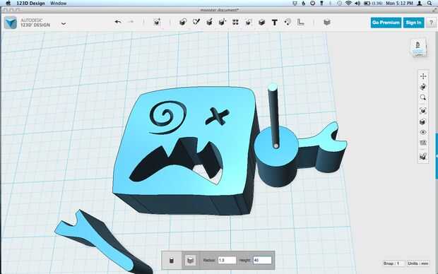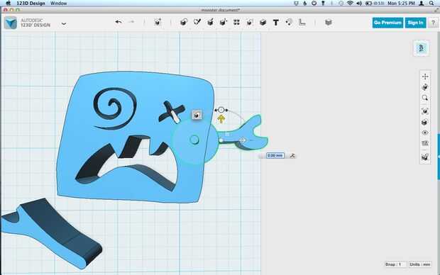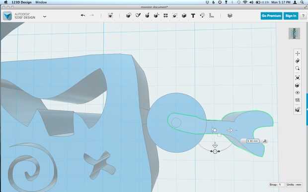 Las partes del cuerpo articulado serán formas independientes y necesitan ser un poco más corta que el cuerpo. Puede moverlos al lado de la forma del cuerpo para comprobar el tamaño. Debe haber al menos 3 o 4 mm por encima y por debajo el brazo, pierna, así que 6-8mm más corta. Experimento. Tal vez más grande o más pequeño serviría tu monstruo mejor.