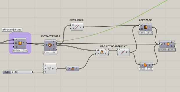 En saltamontes, comencé extrayendo los bordes superficie nuevos Componentes BREP. Más tarde me uní a los cuatro bordes del rectángulo. Una vez tuve una sólida línea rectangular ondulada, proyecta la línea a un avión para fines de trazado. Hasta ahora había 5 lados establecidos. La parte final es la base que puede ser coronada por conectar el botón de Superficie plana con el comando anterior. (véase arriba). Por último es importante a todos estos botón de BREP unir superficies... Ahora tenemos una pieza estanca que puede ser cocido al horno.
