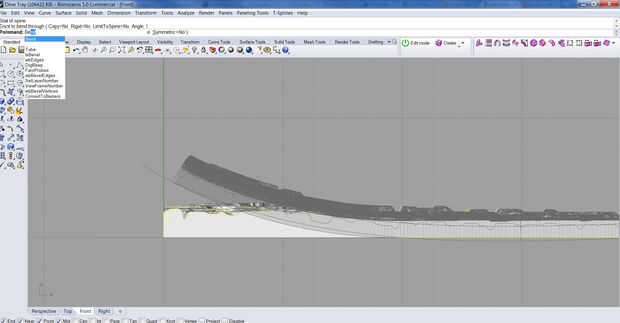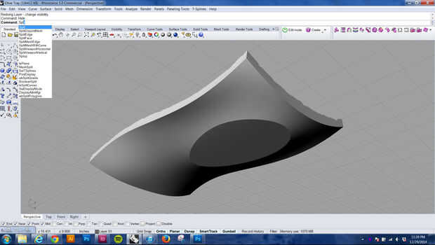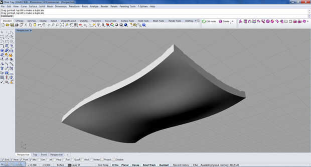Mediante el comando curva en Rhino, puede tomar un objeto existente y gire en diferentes formas. Decidí hacer una onda más interesante como forma. Una vez que estaba contento con la forma, talla el trozo inferior redondeado para que tuvieran un pedazo plano para sentarse en una mesa y no derramar el preciado aceite de oliva por todas partes. Conseguido mediante el comando Diferencia BOOLEANA seguido la Únete para mantener agua firmemente y aún así 3D imprimibles