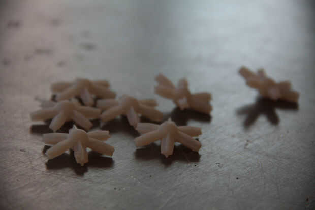 como un seguimiento a mi post original sobre un 3D impreso construccion paja, he hecho una nueva forma del conector. Este nuevo conector se une a cuatro pajas en un vértice. Imprimí este conector con una impresora de epilog (el gran premio de la ma