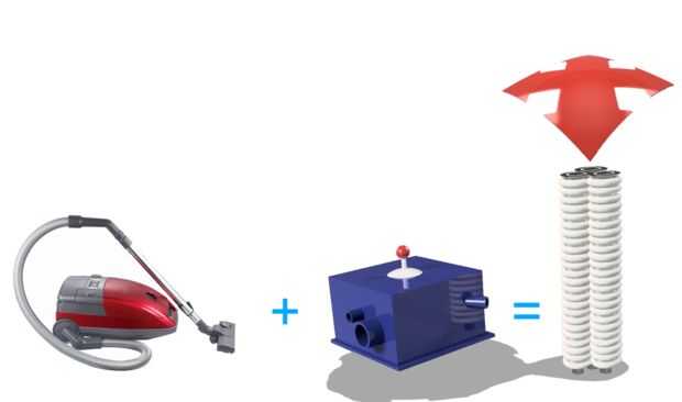 La fuerza disponible depende de la potencia de la aspiradora y el tamaño de los compartimientos, pero con un compartimiento de 4 pulgadas podemos tener una fuerza combinada de unas pocas decenas de libras.