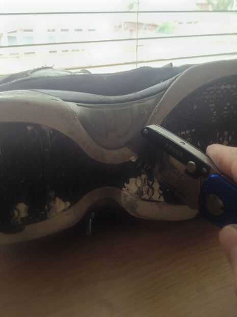 Después de cortar la incisión en la base y asegurándose de que las piezas encajan bien, pegué el zapato a nuestra pieza impresa 3D.