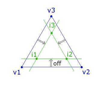 Para generar el prisma, utilicé el método solidFromSlicespara extrudir el triángulo corriente (i1 i2 i3) ortogonalmente a su superficie.
