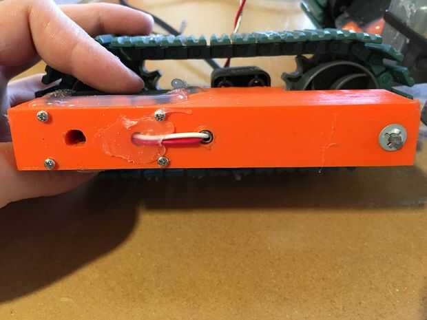 Impresos personalizados Vex tanque pisada sistema 3D está ahora listo para usar. Conecte estos dos cables en el circuito de servo y el sistema de control mediante el uso de Arduino.