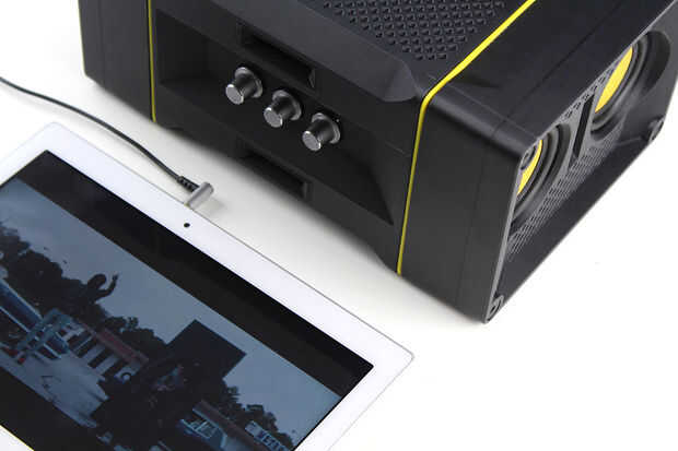 Después de poner las piezas juntas el altavoz fue conectado a la tableta y la música se tocaba para comprobar el sonido calidad fue perfecta.