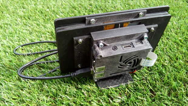 - Solucionar el caso de la parte inferior del Raspberry PI a la protección posterior del tablero de pantalla táctil con los otros cuatro Allen M4 tornillos de 10 mm
