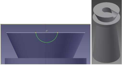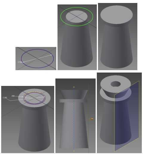 8. crear un plano que es paralelo a la construcción y toca el borde más alejado de su "corona" de forma cónica.