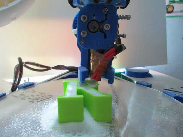 Iniciar tu impresión y ver el número de capas para asegurarse de que el superior no Haz cubierto para arriba. Cuando la impresión está cerca de obtener cobertura para arriba, hacer una pausa en la impresora. Recuerde que puede tomar unos segundos para hacer una pausa. Elevar la extrusora 50 mm para conseguirlo fuera del camino (la impresora automáticamente bajará el estirador cuando reanuda).
