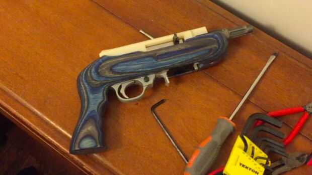 3) un archivo CAD para un Ruger 10/22 o cargador Ruger receptor. Hay un montón ahí. La primera pistola que hice (neón) uno verde utiliza un archivo de CAD diseñado por Todd Aho de Taho diseños. Fue diseñada para el fresado CNC, pero funcionaba bien con Dremel y accesorio de papel de lija. Que diseñé con hierro (plástico) fijo impresiones vistas listos para ir. Lamentablemente no puedo liberarlo por ITAR. Encontrar algo similar que encaja con el tipo de arma está después de, o diseñar su propio. Como dije, hay un montón de archivos flotando en el éter.