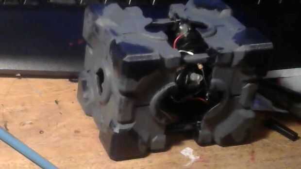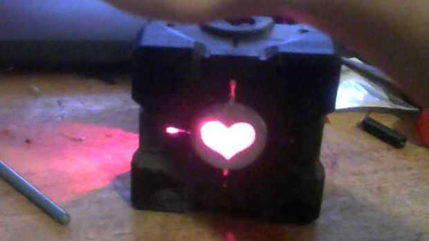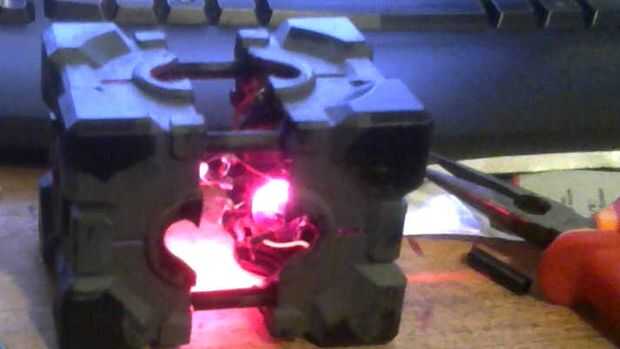 7) Inserte la batería en la pinza y pegamento caliente el interruptor en la esquina de t en la mitad del cubo con el corazón que falta en un extremo, asegurándose de que todavía hay espacio para insertar la tapa del corazón