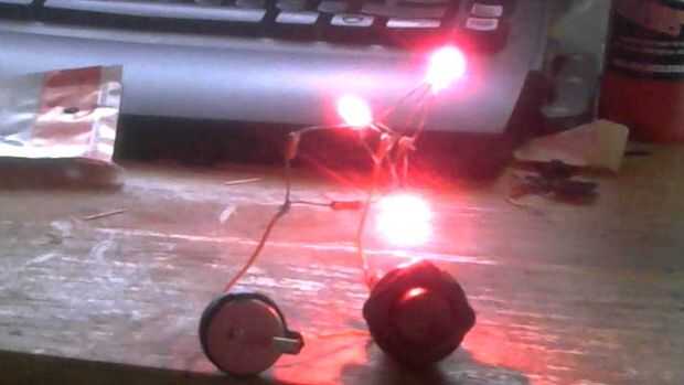 3) soldadura de otro pedacito de alambre al otro lado del interruptor de conexión al ánodo común (pata más larga) en las 4 LED (hay solamente 3 en la imagen)