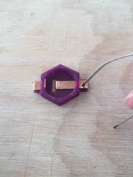 1. usando la pinza afilada de una aguja grande, perforar un agujero a través de la envoltura el terminal de cobre. Asegúrese de que pasa por el agujero de plástico y cobre en el otro lado.