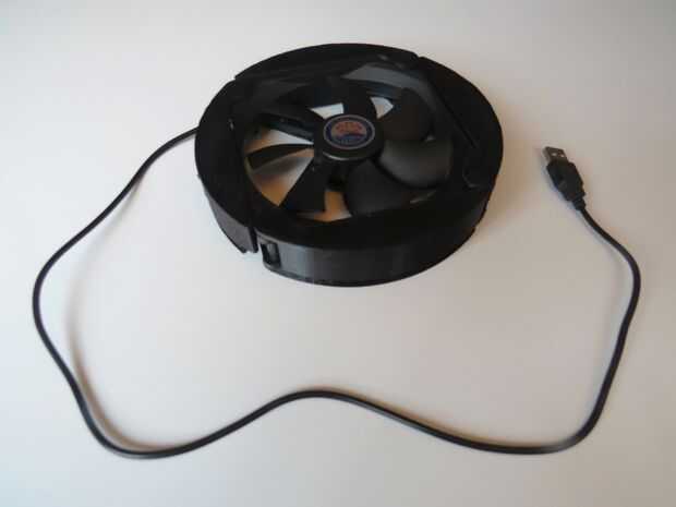 Nota: El ventilador está clasificado a 12V pero funciona perfectamente y con seguridad utilizando su puerto del USB 5V portátiles. La corriente máxima es aproximadamente 125mA (mayoría de portátiles tiene una potencia máxima de 500 mA).