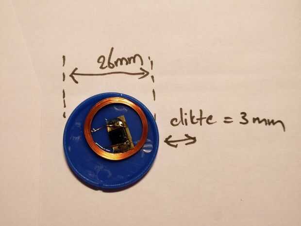 Ahora empezamos por romper los chips NFC de nuestras etiquetas. Para nuestro primer prototipo se utilizó el disco de plástico con el NFC todavía pegada en la parte superior. Esto está bien, sin embargo usted recibirá una pulsera de voluminosa. La parte difícil es usar un cuchillo para obtener el chip NFC sueltas de plástico sin romperlo.