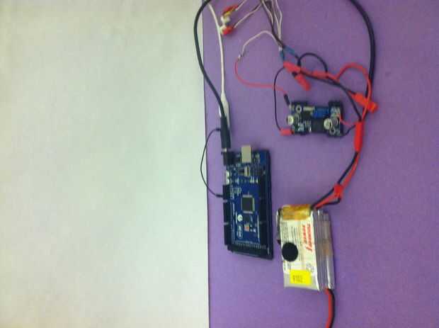 Para este proyecto usé un paquete de 2, 2 células de polímero de litio de la serie o las baterías Li-Po con 15,7 voltios. Regula el voltaje a través de un regulador de tensión lineal con una salida de 8V para proteger el Arduino Uno. La ONU tiene una máxima votage de 12 voltios y tiene un regulador en el microcontrolador pero la tensión recomendada es entre 7V-12V.