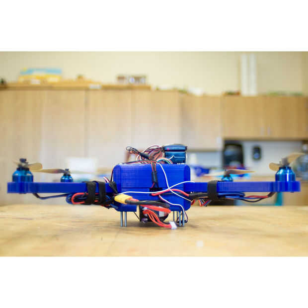 Últimamente las noticias ha estado repleta de historias de la tecnología de los drone. Ya sea para fines militares, recreación o entrega, vuelo no tripulado es el futuro de la aviación. A partir de diciembre de 2013, comenzó a trabajar en un drone con varios de mis amigos. Hemos creado un robot que es 100% diseño propio. Utilizando Autodesk Inventor hemos diseñado, redactado e impreso cada parte de la estructura de nuestro helicóptero. Convertimos nuestros archivos de. IPT para. X3G archivo, lo que nos permite imprimir nuestro marco en un Makerbot 2 x Replicator. Todo el cableado externo fue hecho y revisado por cada persona que trabaja en el helicóptero. Otras tres personas que crearon este diseño tienen las cuentas de Instructables, BobBurghart, CoreyOrlovsky y RichardP4.
