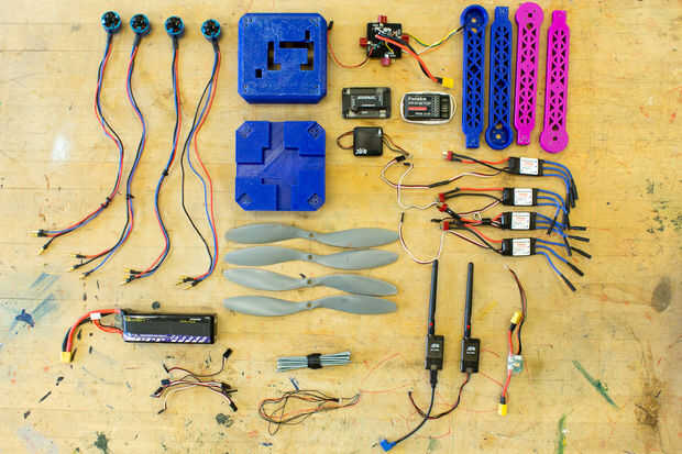 Antes de que cualquiera de la estructura podría ser diseñado, necesitamos considerar el tamaño, forma y colocación de todos los componentes. Nuestro diseño se centra alrededor de un 2.6 ArduPilot. Además, tenemos una tabla de distribución de energía, cuatro controladores de velocidad, cuatro motores y un receptor de FM que debe permanecer con seguridad en el helicóptero. Todas estas partes, con excepción del controlador GPS y FM por razones de la señal, se conservan con seguridad dentro de nuestro marco y no serán vulnerables a accidentes.