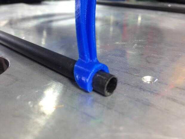 Abrazadera inferior y el tren de aterrizaje - encontrar el 17 cm que cortar antes y broche de presión en la abrazadera inferior. El archivo STL se creó para flechas de 7,11 mm, y es un ajuste apretado.
